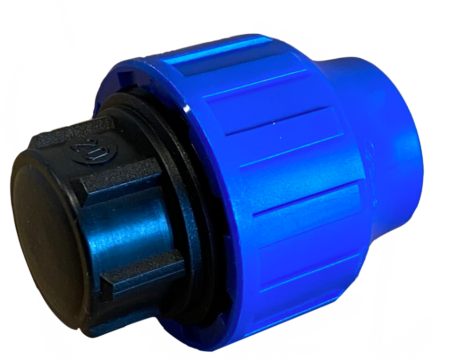 PE-kopplingar i Polypropen av högsta kvalité, avsedd för PE-rör och -slang. Kopplingarna används när det ställs höga krav på säkerhet och korrosionsbeständighet samt mekanisk och hydraulisk belastning. Kopplingen monteras enkelt för hand, inga verktyg krävs